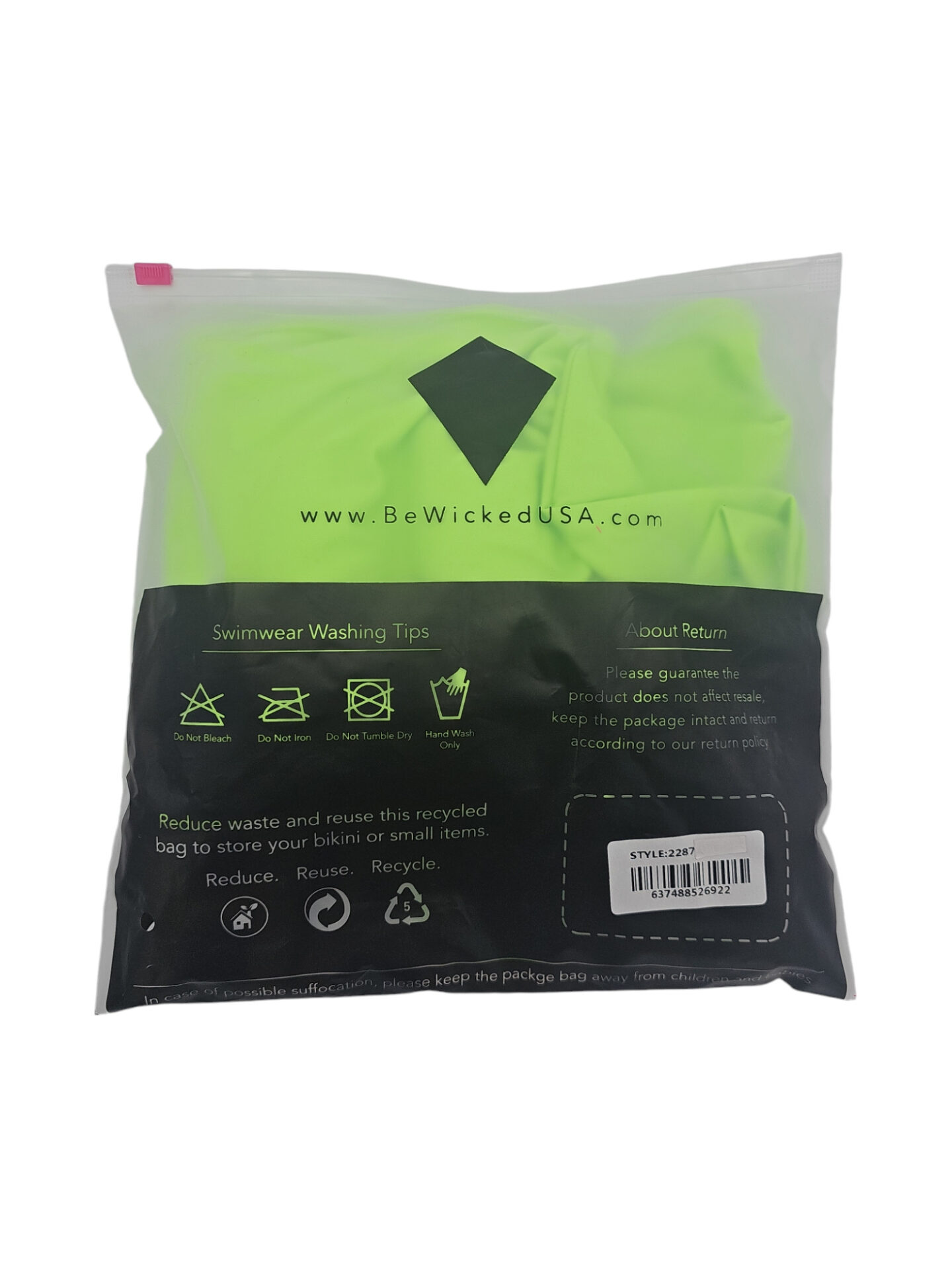 A breezy elegance of coastal style, this neon green, extra-large-sized Shay swim set is both fashionable and versatile. Designed for the modern woman who appreciates a blend of sophistication and comfort, featuring a unique one-shoulder tankini top that sets a new standard for beachwear elegance.