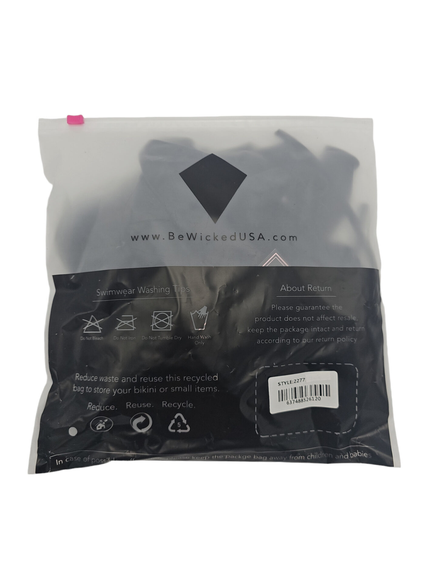 Make a splash and turn heads with a swimsuit that combines the allure of a bikini with the sophistication of a one-piece. This black, large-sized Yasmin monokini is designed with a touch of glamour and a lot of style. This piece features a flattering halter neckline adorned with a ring, providing both support and a customizable fit.